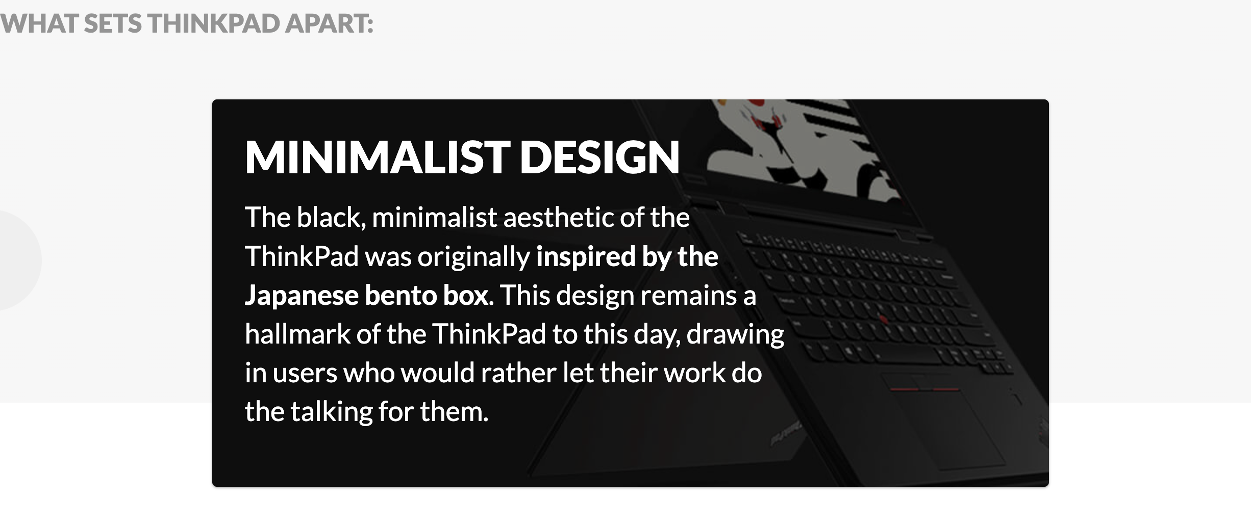 “This [minimalist] design remains a hallmark of the ThinkPad to this day, drawing in users who would rather let their work do the talking for them.”