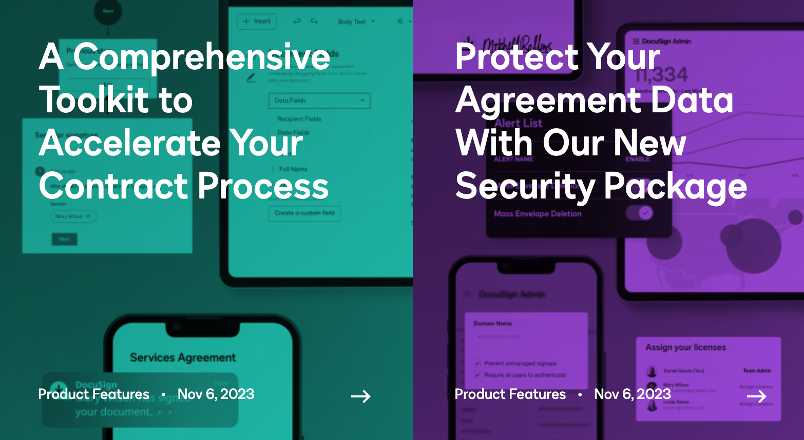 Docusign eSignature released Business Acceleration and Security Packages for Q4 of 2023, both offering high-value features that our customers previously had to purchase à la carte.